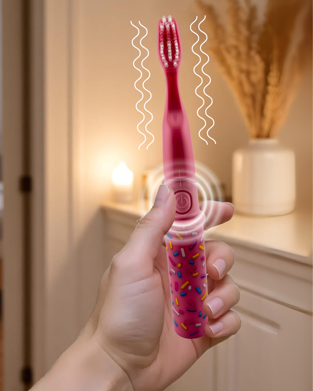 Simply press the button once to start brushing. The sonic motion does the hard work for you — gently sweeping away plaque while you guide the brush along your teeth and gumline. Press again to turn it off. That’s it. No apps, no fuss — just effective brushing in a compact format you can take anywhere.